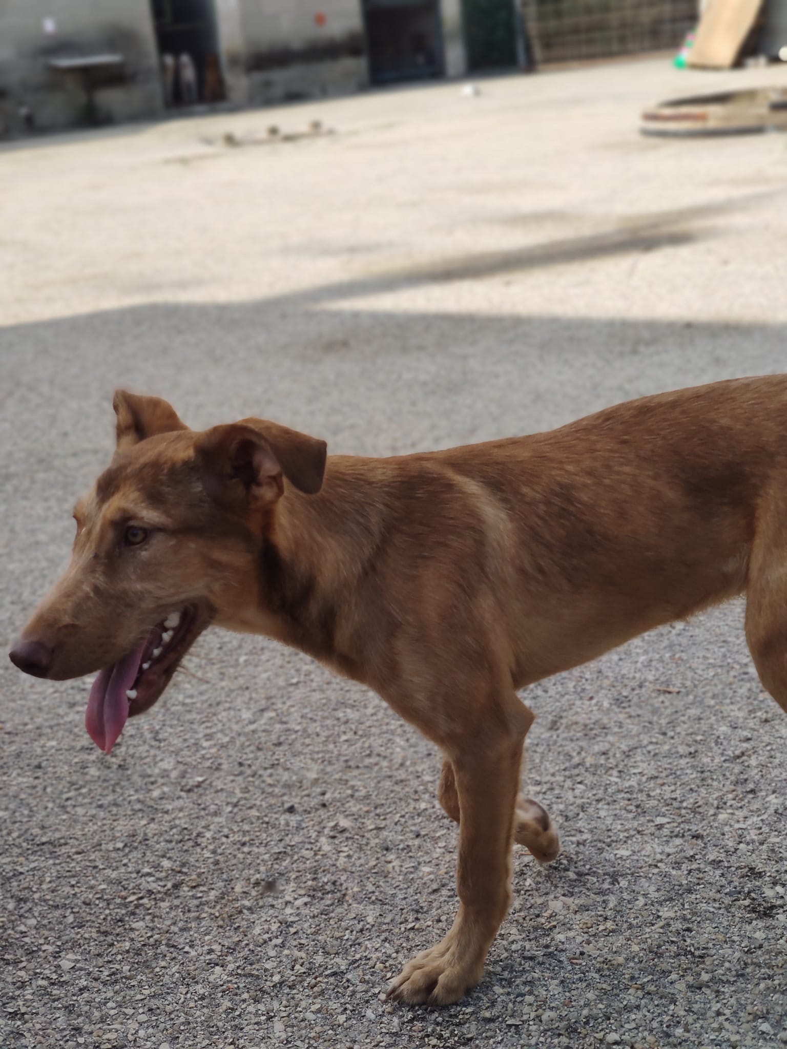 O Ralph chegou até nós com cerca de 8 meses. Procurámos os donos do Ralph mas sem sucesso. É muito meigo e afetuoso, porte médio de pata alta.
